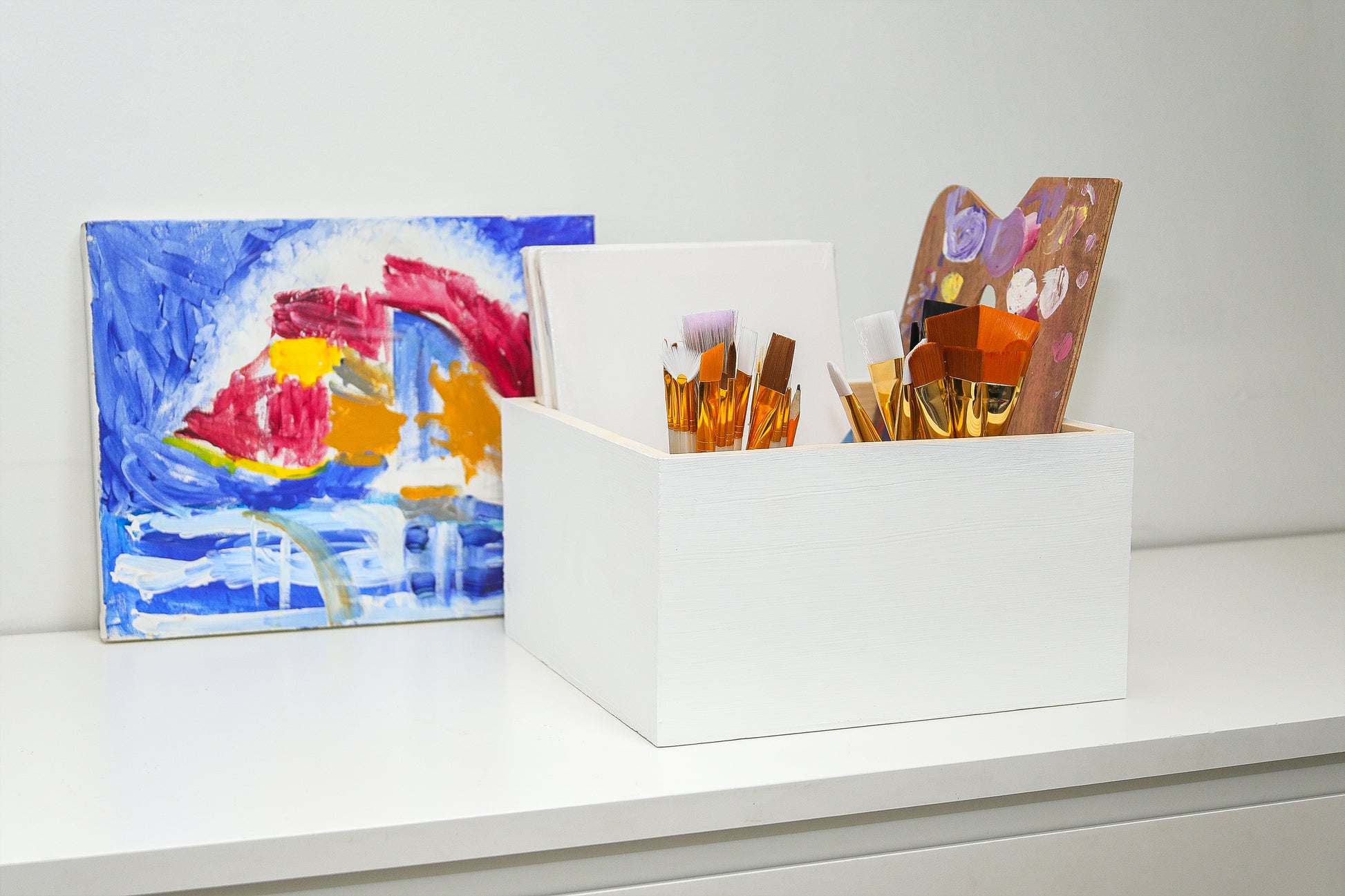 this simple open wooden box is perfect for your shelfs. primed white, it's ready for decoration and personalization with stickers, paint, and any other art work to make it your own. use it to store bottles on your kitchen counter, toys in your kids' room or game pieces in your living room. made of sturdy sanded plywood, it will last through years of use.